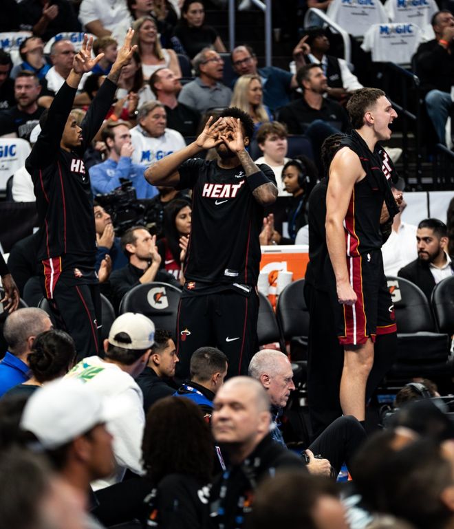开场两队是对攻大战,被交易来的鲍威尔成为热火先锋单节6中3+三分4中2拿到11分2篮板2助攻,就连在季前赛划水的阿德巴约首节也有7分2篮板进账,除此之外米切尔、哈克斯都有贡献,在没有希罗的情况下热火的进攻并没有受到什么影响。魔术这边进攻端还是主要依靠小瓦格纳、班凯罗两人,但此役班凯罗被热巴限制的很难受。